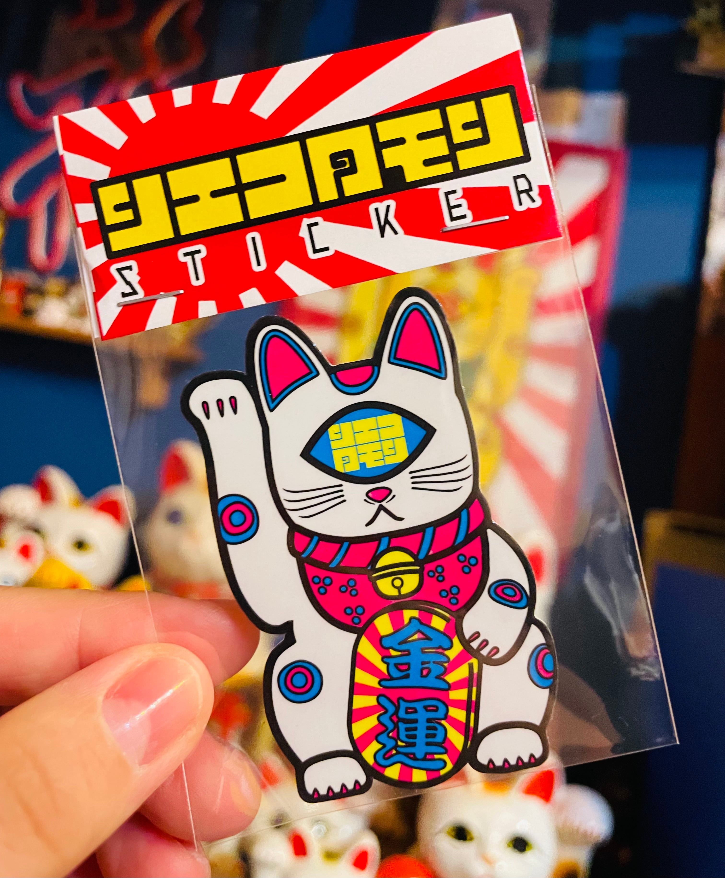 白招き猫ステッカー